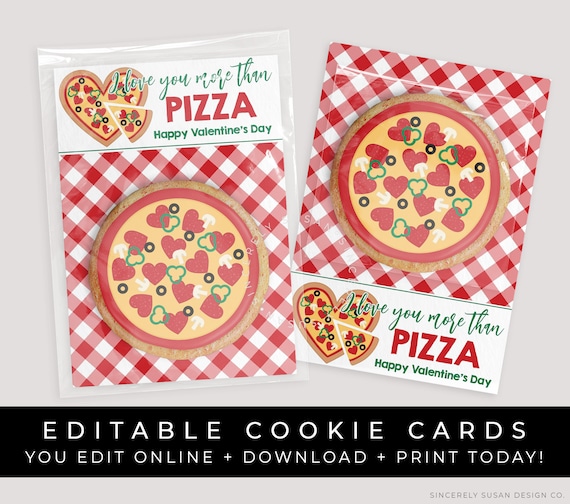 Customizable Pizza Mini Cookie Card Valentine S Day Etsy